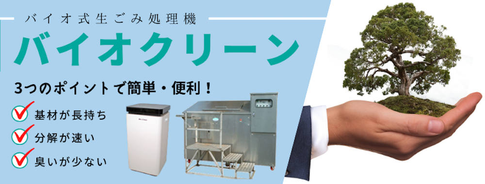 バイオ式生ごみ処理機「バイオクリーン」シリーズは、従来の生ごみ処理機が抱えてきた、分解用基材や脱臭剤の交換などのコストと手間、あるいは臭気といった問題を解決する、3つの特徴を持っています。