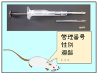 ICタグを実験動物の皮下に挿入し、より確実な個体の識別管理を行います。